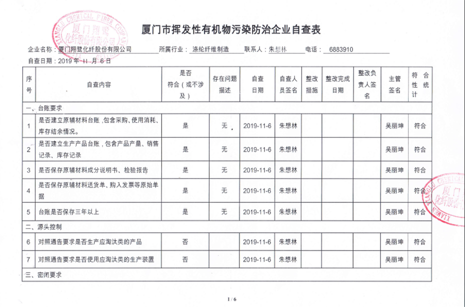 廈門市揮發(fā)性有機物污染防治企業(yè)自查表(2019年第四季度)