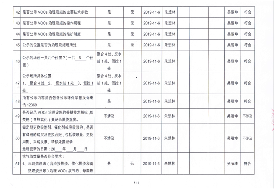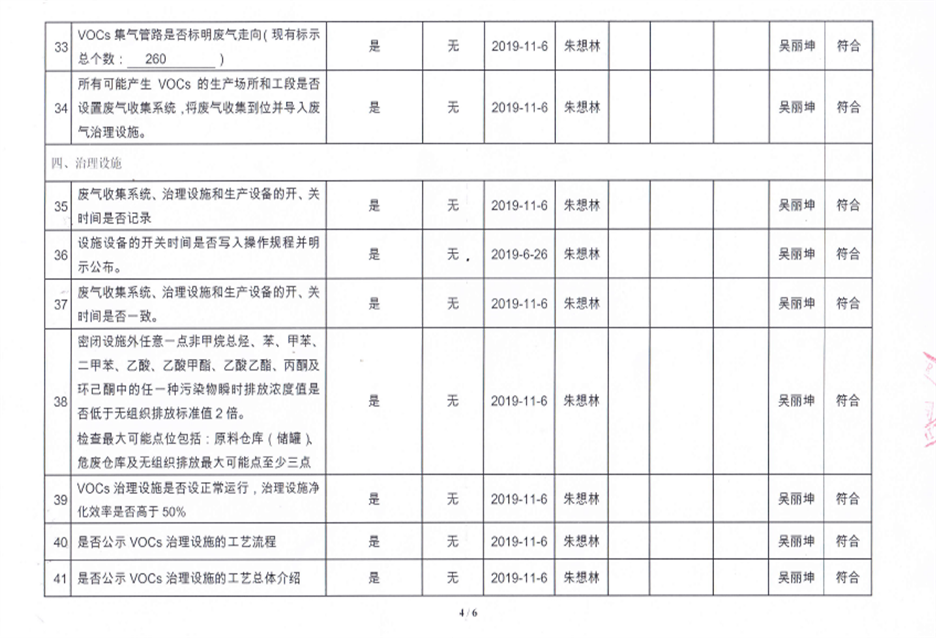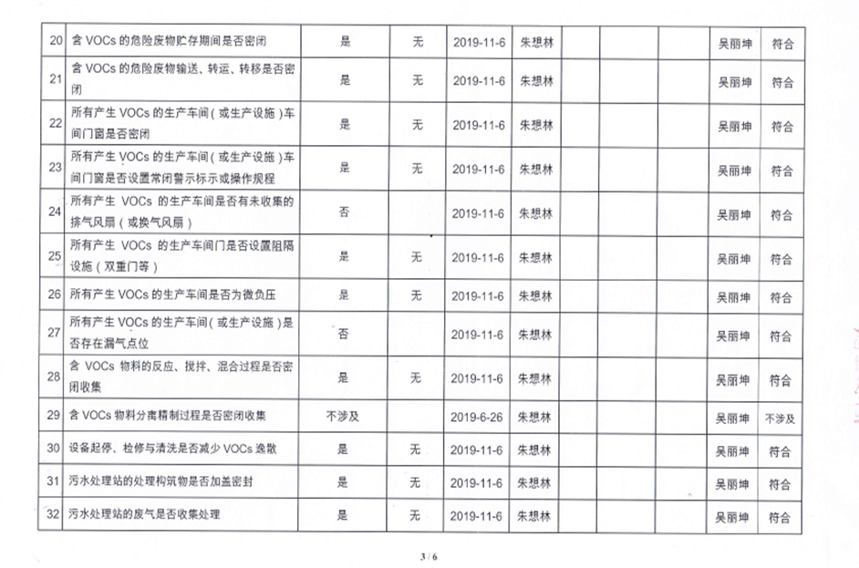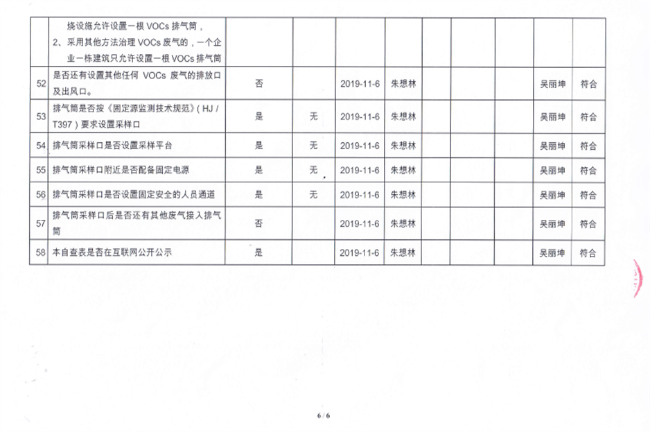 揮發(fā)性有機物污染防治企業(yè)自查表【2019(2)】