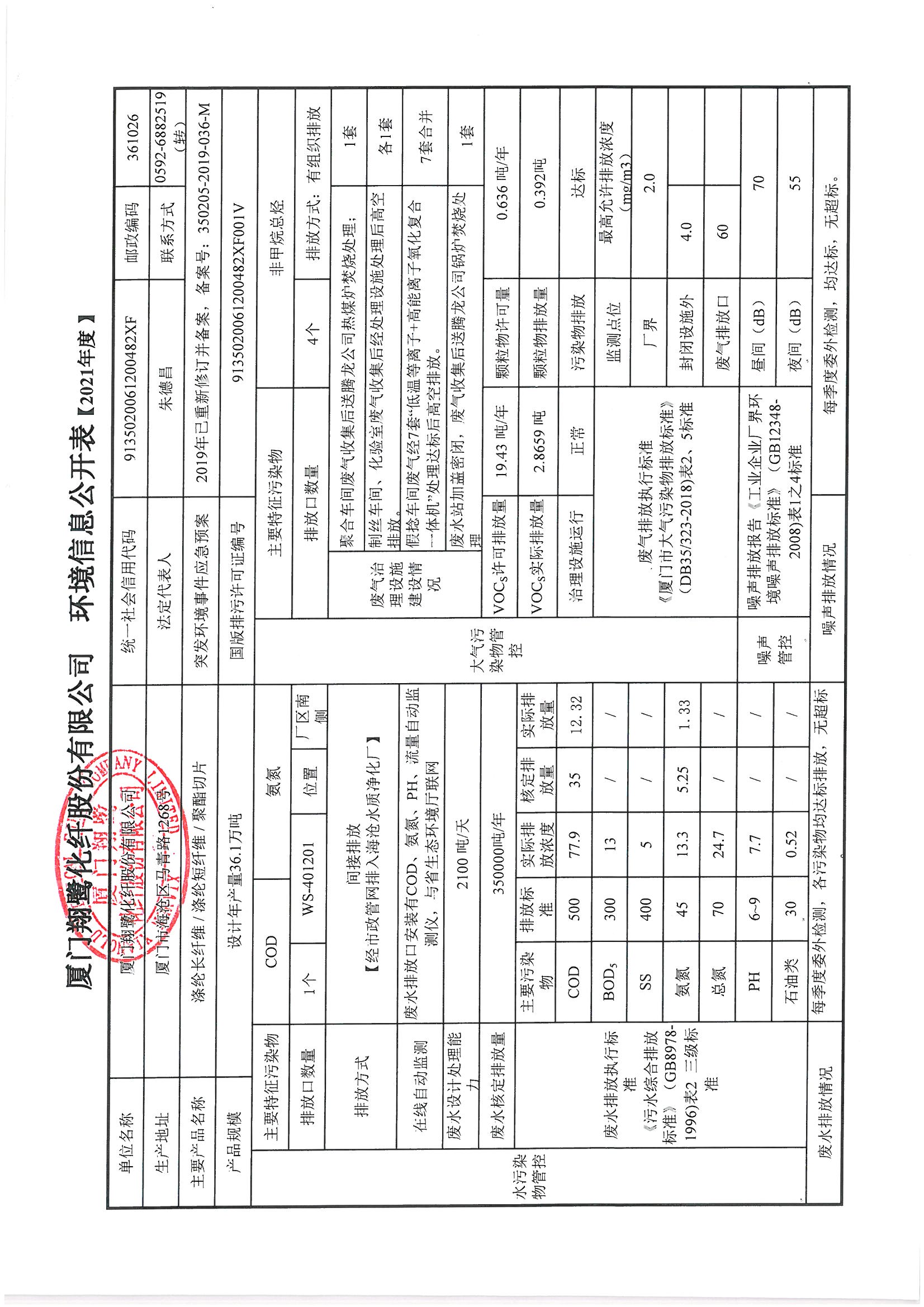 廈門市揮發性有機物污染防治企業自查表 (2021年 第四季度)
